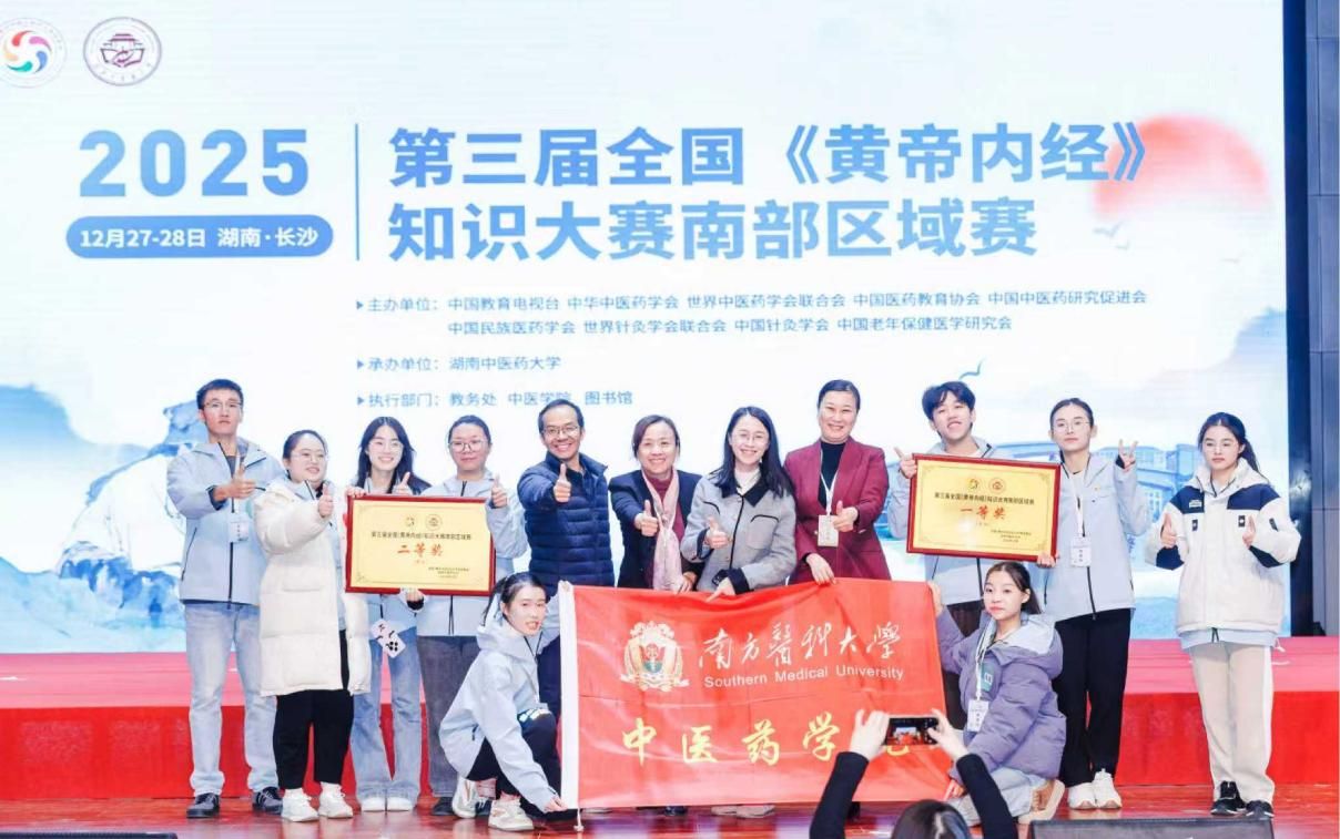 近日,第三届全国《黄帝内经》知识大赛总决赛上,我校“悬壶济世队”(成员:陈熠、林沁仪、童文媛、陈洪佐;后备队员:陈禾)与“青囊远志队”(成员:梁柄昭、陈梓烟、陈慧文、易念茜;后备队员:陈禾)一路过关斩将,双双斩获全国总决赛三等奖,以亮眼成绩在全国舞台彰显了南医学子深厚的中医经典素养与昂扬的青春风采。