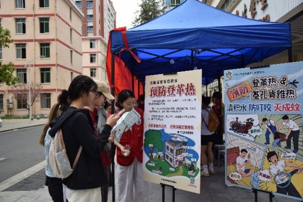 志愿者以图文展板、宣传折页为载体,系统讲解登革热传播途径、临床症状、核心预防措施等关键知识,帮助师生快速掌握科学防蚊要点。由学院病原生物学系研究生组成的专业志愿团队,围绕宿舍清洁、校园环境治理、个人防护等场景,提供针对性防控建议,推动蚊媒防控知识入脑入心。蚊虫标本与模拟孳生环境展示,让师生直观认识蚊虫生长规律与风险隐患,强化“早发现、早清理、早防控”的健康意识。