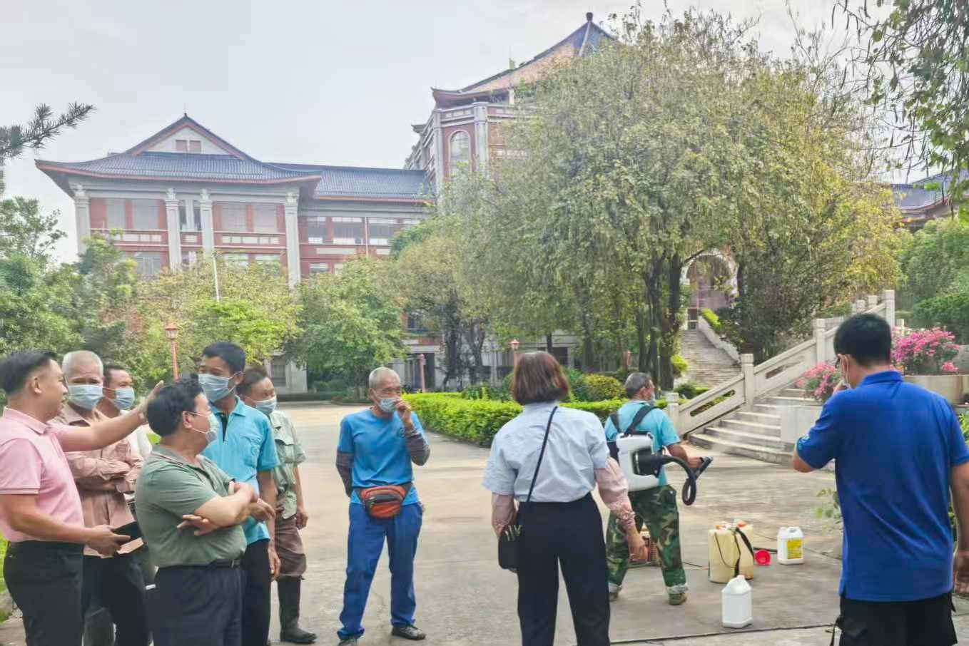 容桂街道疾病预防控制中心副主任朱小强带领专业消杀队伍,结合我校顺德校区校园实际情况,开展了科学灭蚊理论授课,并现场指导一线人员灭蚊作业。培训内容紧贴校园实际,实操性强,为一线工作人员提供了权威、专业的技术指导。