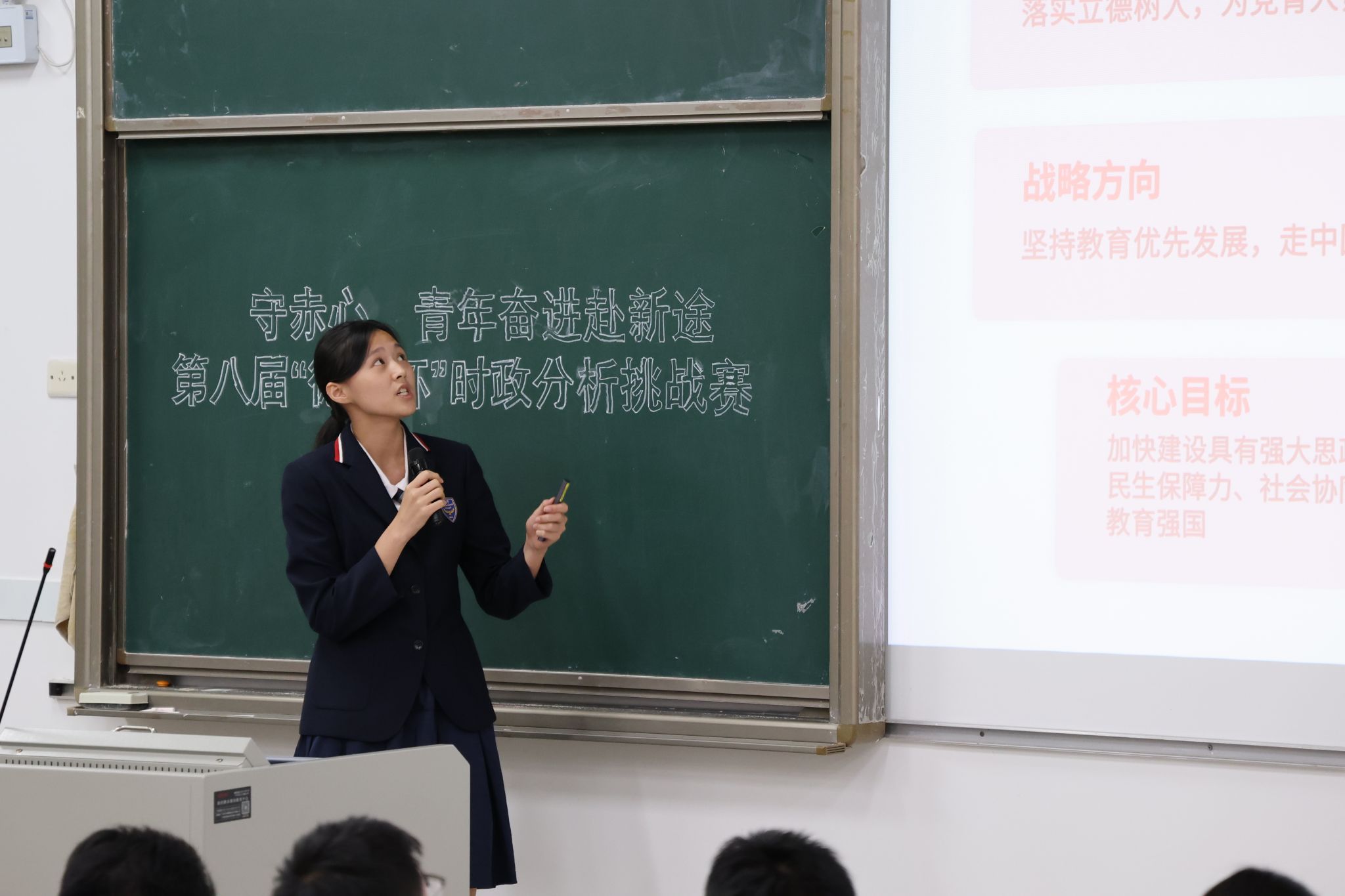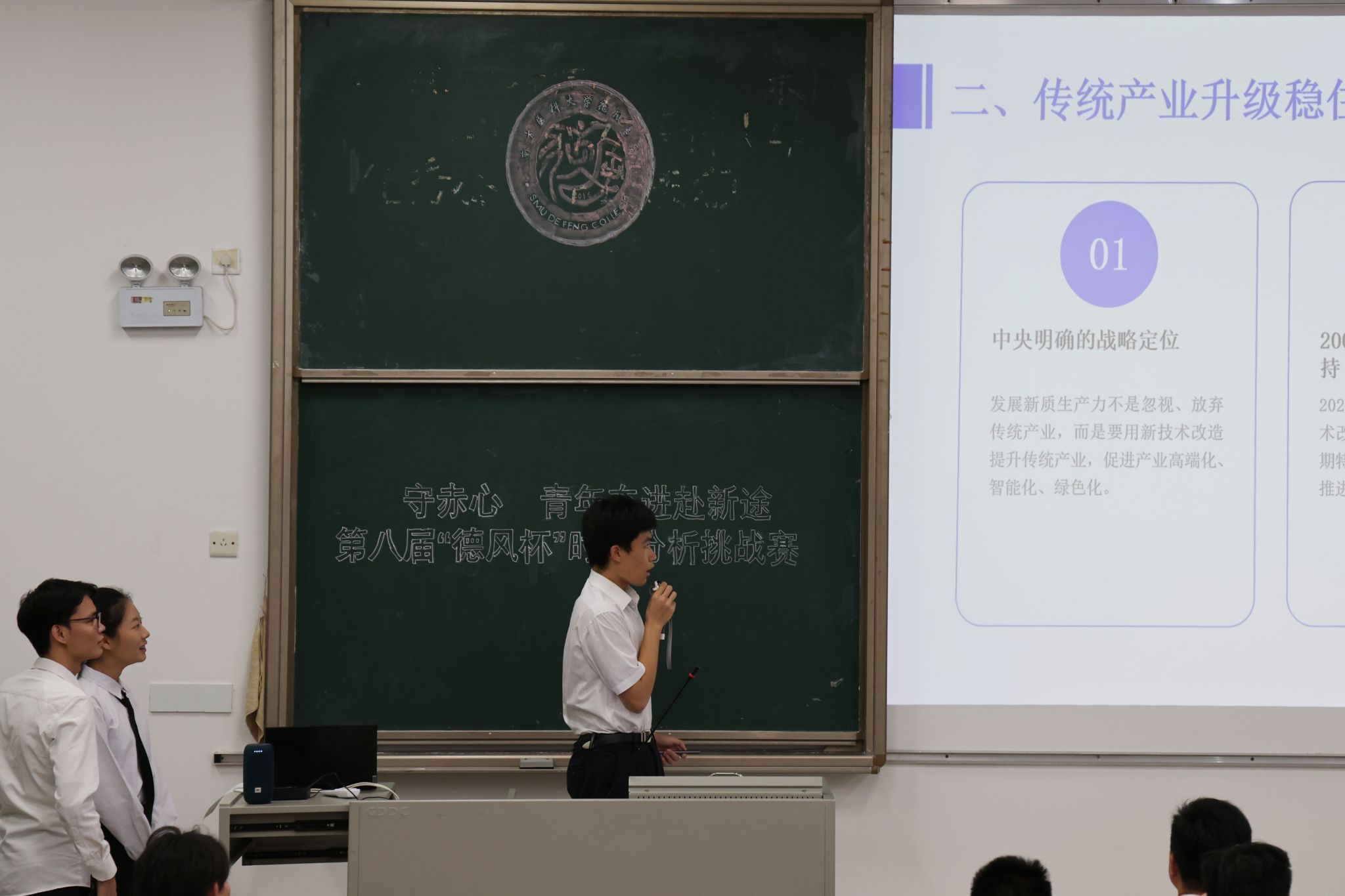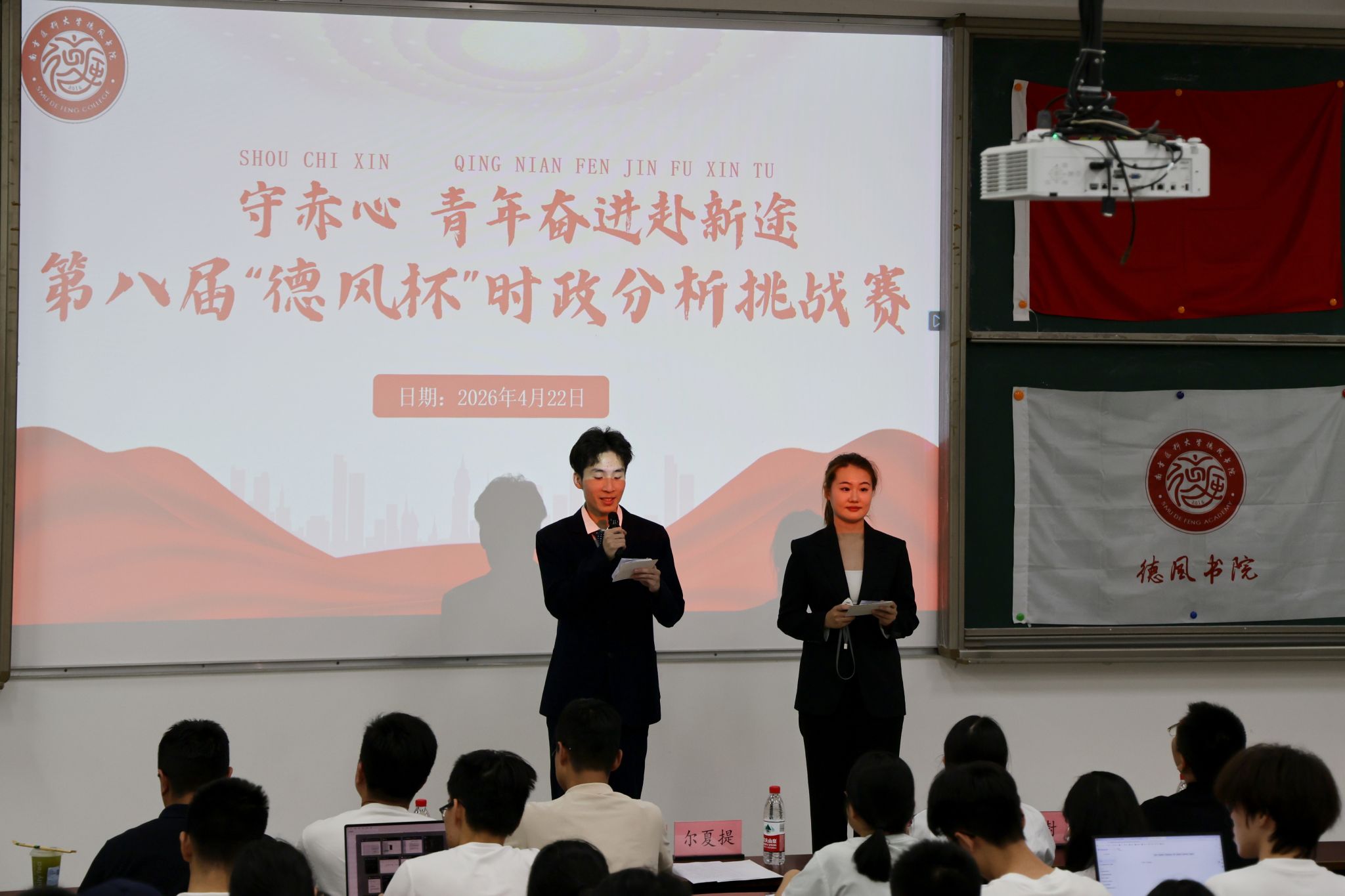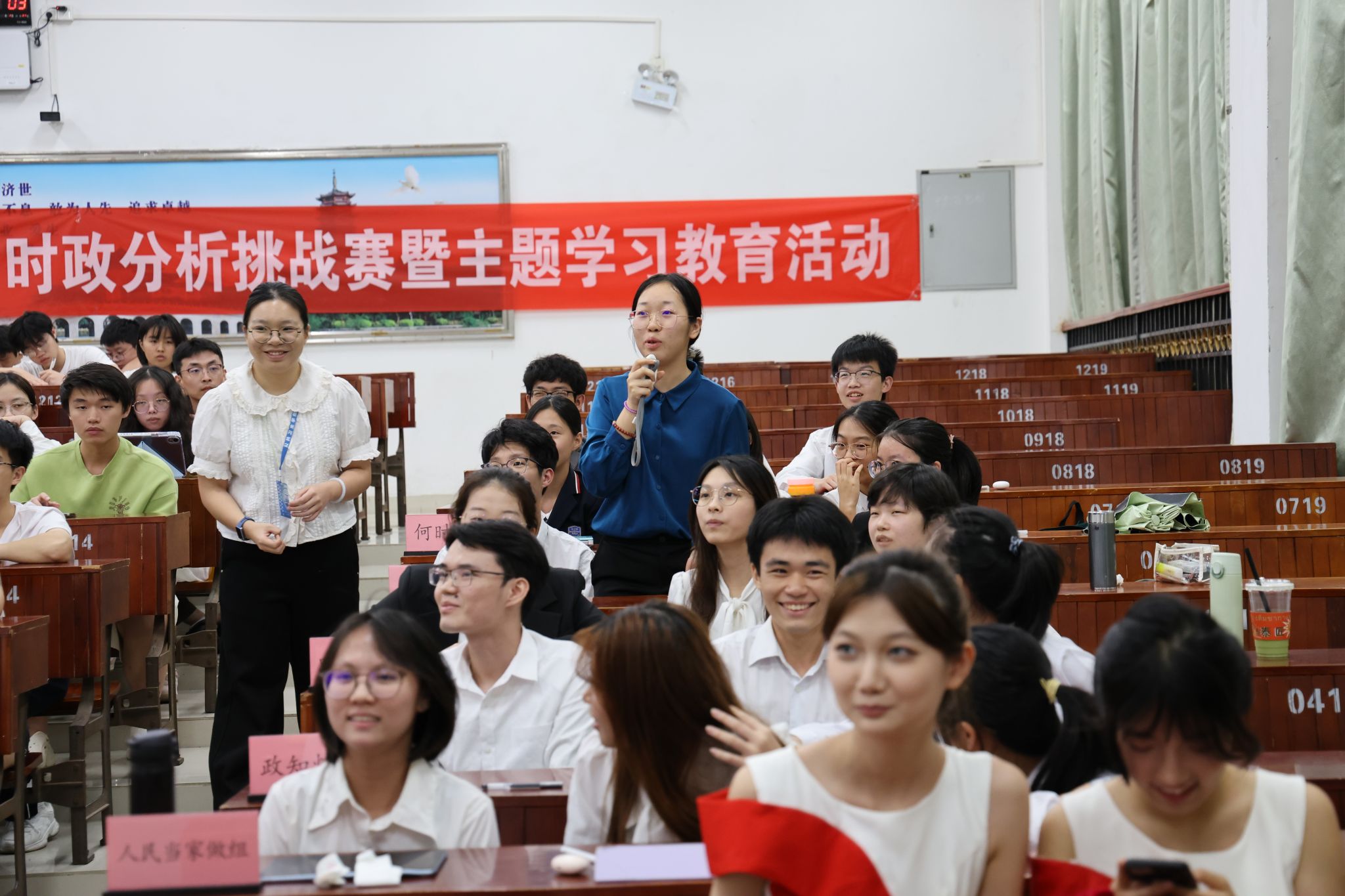 决赛展示环节中,各参赛队伍围绕选定话题展开深入阐述,既有对时政热点的精准解读,也有结合专业知识的独特思考,内容充实、逻辑严谨。评委们结合展示内容精准提问,参赛选手从容应答,结合自身学习经历与专业所长展开答辩,展现出扎实的时政积累、良好的应变能力与鲜明的思辨风采。抢答环节将现场氛围推向高潮,各队选手踊跃抢答,充分展现了德风学子敏捷的思维、快速的反应能力与扎实的时政知识储备。