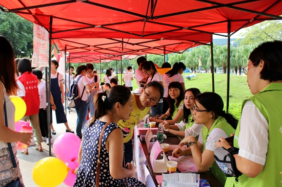 除了摊位上的宣传和咨询,志愿者们还在文塔公园周边针对不同人群派发多种科普宣传资料,如“预防药物过敏反应七要素”、“网上购药安全示警”、“化妆品安全消费手册”、“家庭安全用药、合理用药手册”等,此外还有针对高血压、糖尿病患者以及围产期妇女和儿童的用药常识。
