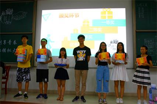 经过观众的投票和学生评委的综合评定,第六组“超和平buster”凭借“大浪淘金”商品推广活动中领先的销售量和“创意无限”商品模拟推广大赛中出色的表现夺得一等奖。