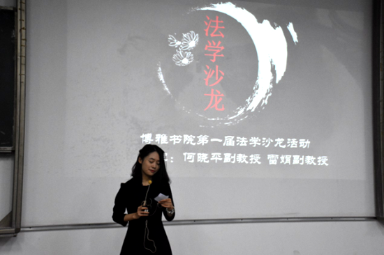 12月23日晚,博雅书院第一次学业导师交流会暨第一届法学沙龙举行,本次交流会以“贾敬龙案”、“美国大学”为主题,邀请法学系副教授何晓平、雷娟,2014级法学朱武毅、卫生法学于靖担任嘉宾,法学系2015、2016级学生、法学双学位同学参与了此次交流。
