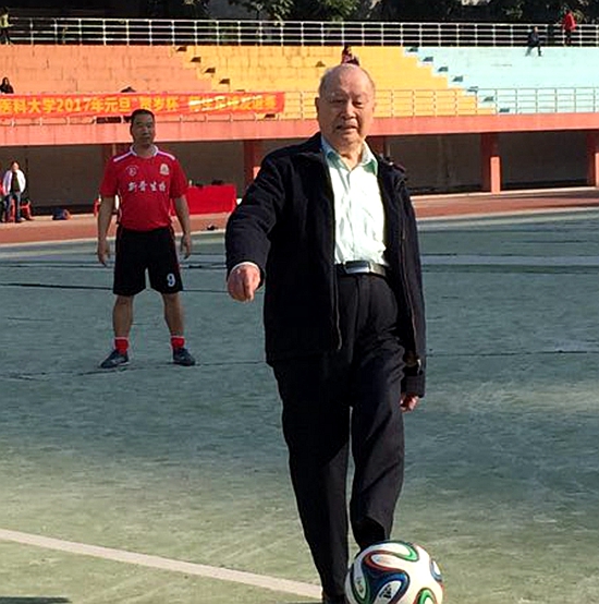 2017年元旦“贺岁杯”师生足球友谊赛于1月1日在体育场举行。钟世镇院士作为特邀嘉宾为比赛开球,并与全体参赛教职工和学生合影留念。 本次比赛由校工会、校团委联合主办,教职工足球协会和校学生会具体承办,办赛主要目的是辞旧迎新庆祝元旦,增进师生交流与互动,营造健康活泼的校园文化氛围。赛前,参赛教职工与学生互换新年贺卡,送上美好的新年祝福。经过90分钟激烈比拼,学生代表队最终技高一筹,以2:1比分战胜教职工代表队,连续2年捧起“贺岁杯”冠军奖杯。