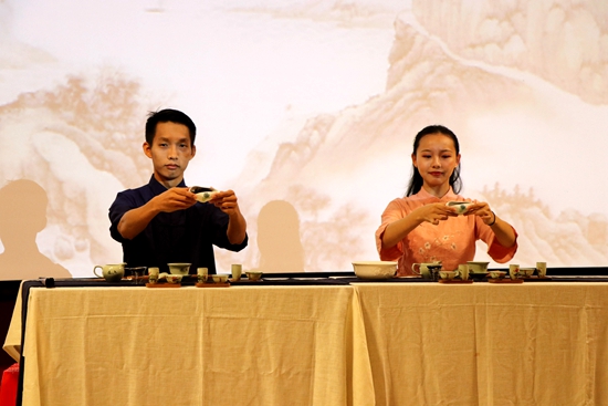 太极队表演了太极拳以及太极扇两种形式的演出,太极拳的刚与柔,象征了师生之间的柔情与坚持不懈,太极扇的时开时合,寓意学生工作中的硕果累累,屡创佳绩。茶香醇厚,茶艺惊艳。本学期学院新设立的茶艺兴趣小组,在刘秋阳老师的带领下,带来了精、清、净、美的茶艺表演,茶艺兴趣小组的成员还邀请来宾一同品茶。2013级中医学郭广宇同学带来了圆润明亮,端庄大方的戏曲表演。幽咽婉转,若断若续,娇媚婉约,活泼俏丽,尽显戏曲文化的博大精深。