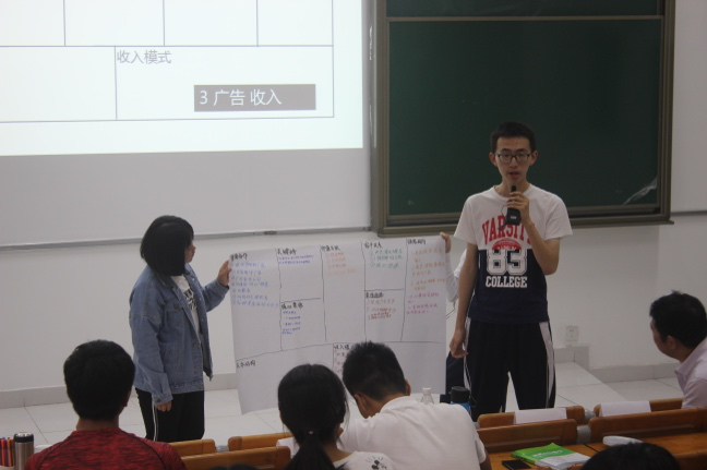 当天课程由刘志超讲授创意设计与商业模式,他带领同学们进行思维练习,从产生想法,到将想法创造性的变为实践,让同学们充分感受到创新的魅力。下午的课程中,同学们通过小组合作的方式绘制商业模式画布,初步了解商业模式层次、应用及设计,为接下来的双创学习打下了良好的基础,也为同学们今后的发展与创业开启了崭新的道路。