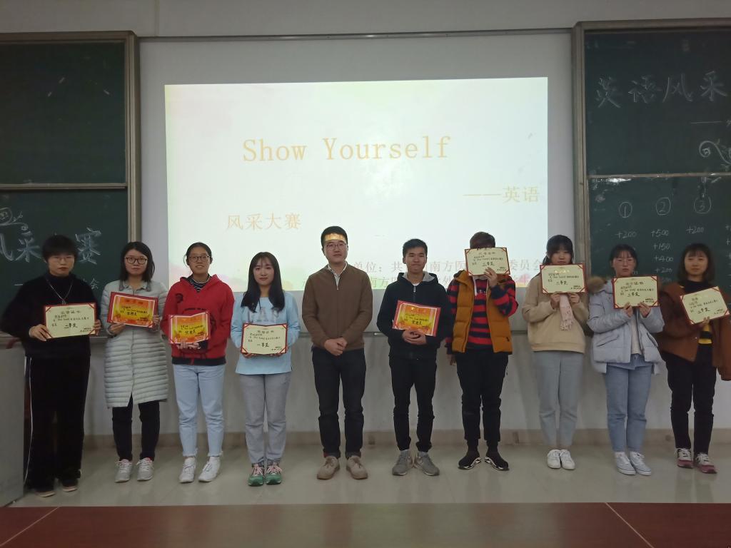 由校团委主办,外国语学院学生会承办的“英语风采大赛——show yourself”于12月13日在顺德校区举行。