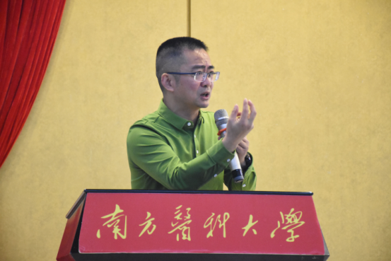 吴旭通过生动且富有感染力的语言,以“如履薄冰,敢于舞刀,敬畏生命,创造奇迹”为核心,向同学们讲述他的参与过手术治疗和他对医学的理解。