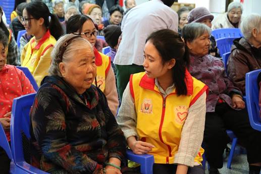 3月17日,院团委青年工作部组织志愿者在凤城敬老院展开了一项慰问老人的活动。在老人们的娱乐室里,志愿者们热情地和老人打招呼,与她们聊家常,给予她们关怀。在陪伴老人看了近四十分钟粤剧《白龙关》以后,气氛逐渐变得活跃起来。之后的猜歌环节更是将气氛推向了高潮,敬老院充满欢笑声。