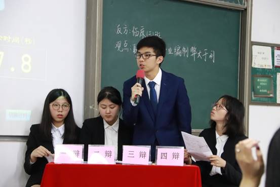 25日总决赛上,医学影像学辩论队和临床一班辩论队围绕“取消医生事业编制利大于弊还是弊大于利”展开了唇枪舌战,辩手们在决赛现场上精彩的表现给观众留下了深刻的印象,最终医学影像学辩论队获得本次比赛的冠军。