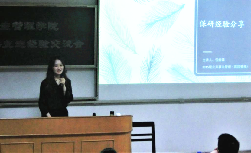 5月21日晚,卫管学院举办了优秀毕业生考研保研经验交流会。伍娅菲(保研至华中科技大学),龚静(清华大学),贺琳(苏州大学),徐朝澎(广东财经大学),张钟元(曼彻斯特大学)5位优秀学生代表讲授保研、考研、出国经验及心得。