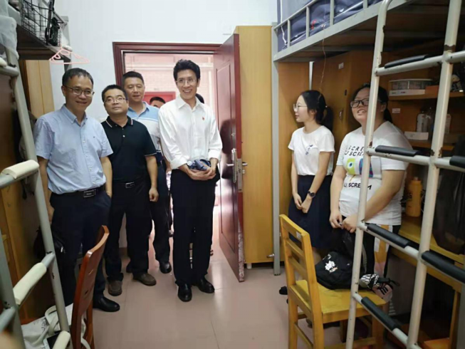来到宿舍,李文源一行详细询问新生对住宿、饮食和校园环境等的适应情况,仔细查看了新生宿舍的通风、热水情况。谈话中,当了解到有来自新疆喀什的同学,李文源介绍,喀什地区第一人民医院是学院援疆帮扶医院,学院有很多医生都去过那里,南方医院和新疆喀什有着深厚的情谊,希望大家努力学习,学成回报家乡;有的同学是口腔专业,李文源勉励他们,口腔人才目前在社会上较为紧缺,同学们大有可为;有的同学来自黑龙江,李文源仔细询问气候饮食差异,希望他们尽快适应这里的生活。