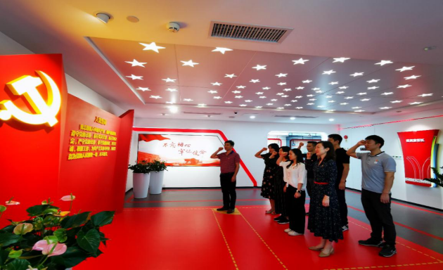 在智能答题区,支部成员组织进行了党建知识答题竞赛;在多功能影音播放区,聆听了一堂党课——《新时代、新征程》,观看了一部爱国主义经典影片——《广州起义》;活动最后,在党建基地的党员宣誓区,支部成员还重温了入党誓词,彰显了全体党员“不忘初心、牢记使命”的坚定政治信念,为主题党日活动划上了圆满的句号。