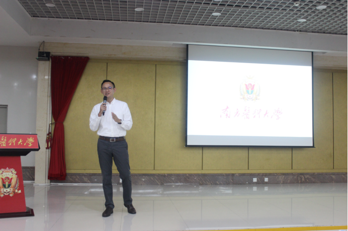 11月1日晚,生物医学工程学院优秀校友经验分享会在顺德校区国际会议厅举行。本次活动的主讲人是2004级生物医学工程学院优秀毕业生周金俊。学院党委副书记王婉君等学院领导和老师,2018、2019级学生代表,共260人参加了本次活动。