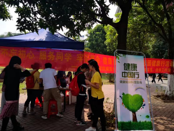 11月16-17日,病原生物学系党支部与公卫学院学生党总支及虫虫工作室在顺德校区开展了以“不忘初心,服务同学,牢记使命,健康南医”为主题的校园健康行活动,通过摆摊宣讲,开展肝吸虫病等的科普宣教活动,提高了同学们的疾病预防意识,落实了“健康校园”行动,培养了预防专业学生科普宣教和疾病调查能力。