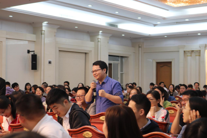 刘海峰主要对当前就业选择与形势进行分析,用丰富的调研事例和数据向毕业生层层剖析就业岗位选择。老师幽默风趣,现场气氛热烈。在答疑环节,他特别指出签协议需谨慎。