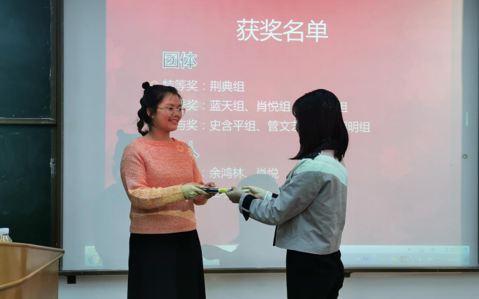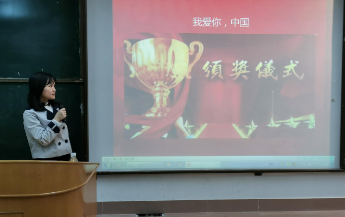12月6日晚,支部在教学馆举行了颁奖仪式,同学们分享了自己的创作灵感和作品所要表达的真情实感。刘鸿锴同学代表小组上台发言:“五星红旗是先辈们用鲜血染红的,我们应该珍惜这来之不易的和平幸福生活。无论处于哪个地方哪种情景,当我看到那一抹中国红时,我们的内心都十分安定,我自豪,因为我是中国人。”刘华缓同学介绍作品时动容地说道:“我们铭记历史的同时更应该发奋图强,以青春灌溉梦想,用梦想点燃希望,为祖国的事业不辞辛苦,默默奉献。”