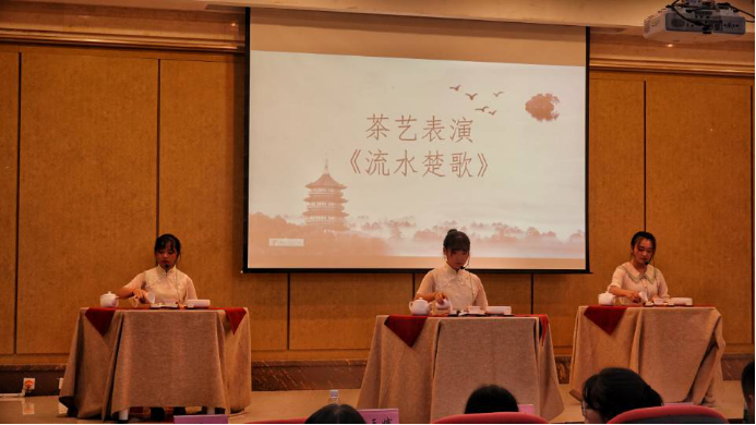 结束休息时间之后,继续迎来精彩的朗读分享,袁荧影同学朗读的《夕阳下的呼喊》温情脉脉,韵味悠远,是陪伴中的暖暖温情;白英蓉同学朗诵的《雪夜柴屋》语调轻柔,意境深远;李茜茜同学朗诵的《你是我不及的梦》深情动人,触动心弦,是对昔日时光和自由洒脱的追寻。分享会上,由茶艺社带来了精彩的茶艺表演《流水楚歌》,行云流水的茶艺表演,舒缓了在场观众的内心。