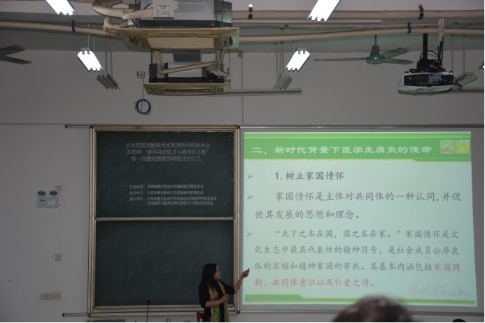曾汉君以《新时代医学生的使命与担当》为题进行授课,课程内容精彩而充实,给同学们带来了很大启发。她指出,当代大学生需要树立家国情怀和注重德才兼备,其中“德”方面需要尊师、爱校,而“才”需要夯实专业技能、理解职业特性、树立创新理念和学习沟通技巧。在讲解“爱国主义”时,曾汉君生动讲授了红军长征途中飞度泸定桥和血战湘江等故事,在场学子深受感动。