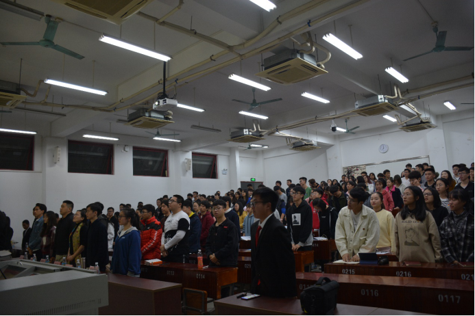 在开班仪式上,到场全体师生起立齐唱团歌《光荣啊,中国共青团》并进行宣誓。随后,来自基础医学院2019级基础医学专业的谢辰作为学员代表发表了自己的感想,承诺认真参与学习、积极反思,用理论武器提升自己的政治觉悟,并鼓舞大家认真参与接下来的学习。