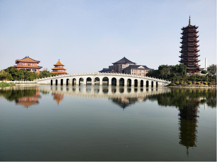 没有阳光,没有云彩,也没有风儿,顺德校区的景湖水天一色,冬日如镜。