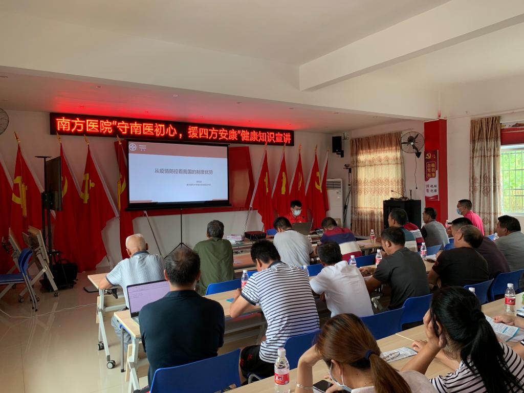 援荆州医疗队队员、“洪湖市荣誉市民”、南方医院感染内科医生徐钰源还特别宣讲了《从疫情防控看我国的制度优势》,分享南方医院医疗队在洪湖市的防疫经历,分析了中国共产党的领导和中国特色社会主义制度在新冠肺炎防疫中的优势,进一步坚定了村民们对中国特色社会主义的道路自信和制度自信,树立脱贫攻坚、共奔小康的信心。