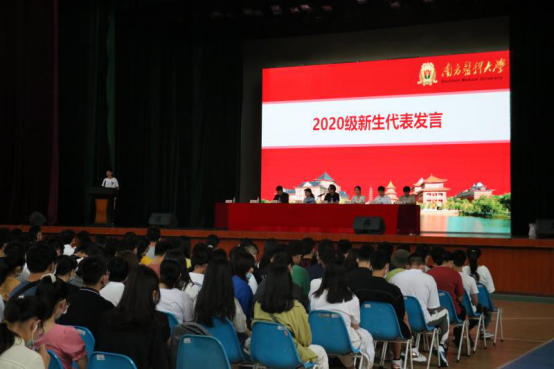 2019级优秀学生代表刘桂滢分享了她宝贵的学习、工作经验,展现了新一代大学生的责任与担当。2020级新生代表张一楠同学上台发言,表明了秉承南医精神,仰望星空、志存高远的决心和南医学子的奋斗目标。