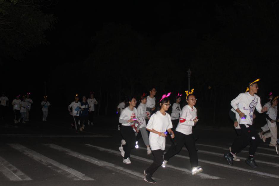 荧光夜跑是一个集娱乐性和公益性于一体的活动,将身障体验作为本次的特色亮点贯穿活动全程。该活动在顺德校区举办,奔跑者及工作人员超过500人参与其中,共设置了六个游戏摊位、两个铃铛人摊位、彩蛋摊位及复活摊位。游戏摊位通过设计单手拉拉链、手语记忆、画鼻子、背后比划猜字等以身障为主题的游戏,让同学们体会听障、语障、视障以及残障带来的感受,以此走进身障人士的世界并了解其在日常生活中的不便,从而能够给予身障人士更多的尊重与关爱。夜跑结束后,颁奖嘉宾为一、二、三等奖共4支队伍颁奖并合影,同时进行彩蛋组及铃铛人的抽奖。夜跑活动让同学们在紧张的学习生活中放松身心,充分体现了全体学生积极向上的精神面貌。