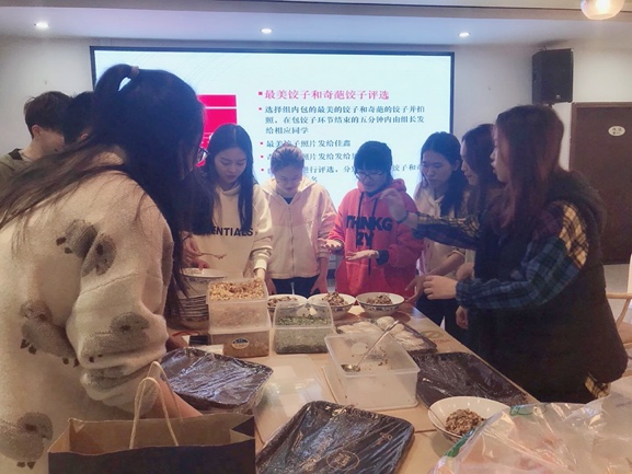 吃过色香味俱全的饺子过后,同学们开展了“何处繁华笙歌落——听歌识曲”、“ 但求跋涉见曙光——抢凳子”、“奇怪园里有什么——逛三园”等娱乐活动,热闹的气氛洋溢出浓浓的节日氛围以及家的温暖。最终通过小组积分以及“最美饺子与最奇葩饺子”评选决出了获得精美礼品的小组。活动结束后,同学们自发组织打扫好食堂的卫生,将桌椅摆放整齐。