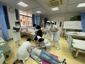 整个训练分为前期的单项技能操作及后期的综合案例演练。基于前期报名选手的临床应变能力以及理论基础选拔并确定参赛名单后,老师们便开始紧锣密鼓地制定训练计划:利用周末时间,进行网络会议,讨论与剖析比赛通知,为更好更科学地制定训练方案;联系并协调各个科室的护理组长、教学组长以及专科护士,为选手们开展各大系统、不同专科方向的培训;每日训练后立即进行床旁讲解与分析,督促选手们利用晚上时间复盘与思考;特别到后期,老师们和选手们节假日连轴转进行模拟赛,老师们时常带领年轻助教和选手们前往不同训练中心参观学习。