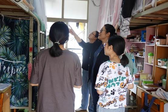 学生宿舍卫生方面整体干净整洁,未发现使用违规电器等行为。院领导在检查过程中,与同学们的就生活以及学习方面的问题进行谈心交流,向同学们致以真挚的问候。