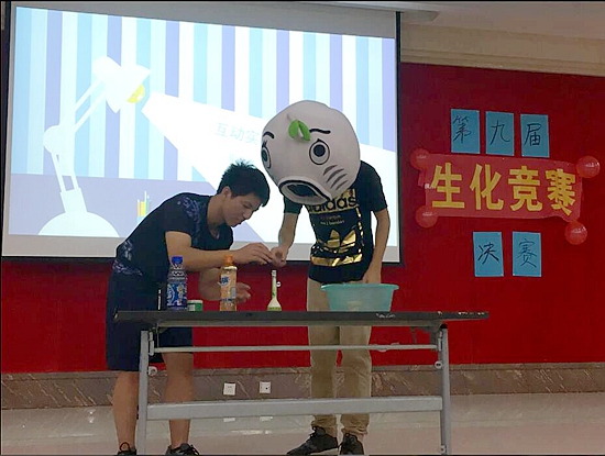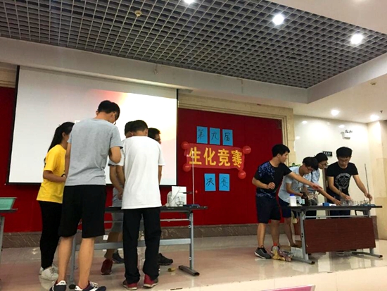 经初赛筛选,站在决赛舞台上进行巅峰对决的6支队伍分别是“南医四侠队”、“感受气氛队”、“风1-130”、“蒙的全队”、“临工队”、“天下第一队”,决赛环环相扣,共分为两轮,第一轮包括生化知识车轮战和追逐战,累积得分前三的队伍进入决胜轮,决胜轮为实验操作大比拼,赛况异常激烈。