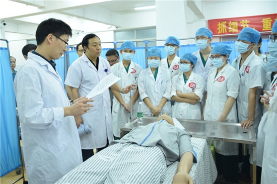 7月20日晚,第二临床医学院2012级学生实习中期技能竞赛在技能中心举办。正在广州市内三所临床实践教学基地实习的学生代表两人一队,分组角逐。比赛既有独立操作,也有团队协作。