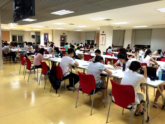 随着考试月的来临,图书馆舒适的学习环境成为同学们备考的首选之地。为了满足大家的需求,从即日起至2016年7月14日,校本部图书馆闭馆时间推迟至23点,延长后校本部馆开馆时间为周一至周日 8:00-23:00,每天开馆长达15小时。 自2013年开始,图书馆在岗位人员没有补充的情况下克服种种困难,坚持在每学期的考试月期间延长开馆,为读者复习备考提供便利,此举得到了读者的高度评价,成为读者迎接考试月的一种期盼。