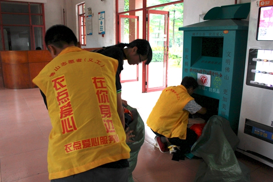 在校青协号召下,同学们响应热烈,衣物回收柜在短短几天就不足以再继续装下大家的热情,以至于箱顶、地板都放满了衣服。