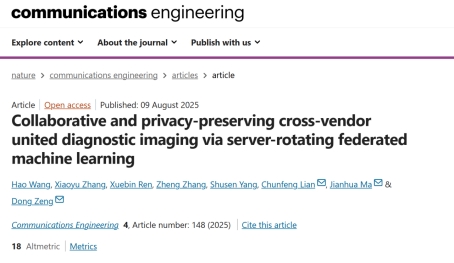 近日,生物医学工程学院曾栋团队在提升跨机构跨机型医学影像协作效率与隐私保护方面取得系列重要进展。团队提出的创新性服务器轮转联邦学习方法,有效解决了多供应商数据协作中的核心难题。这些系统性成果为医学影像领域的多机构高效协同与隐私安全开辟了新路径。