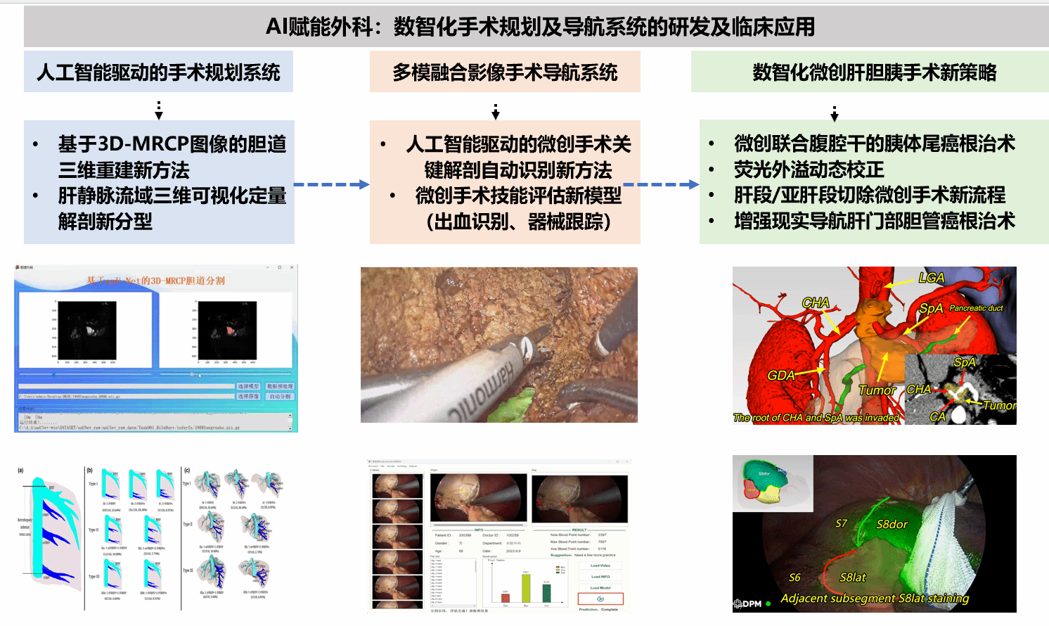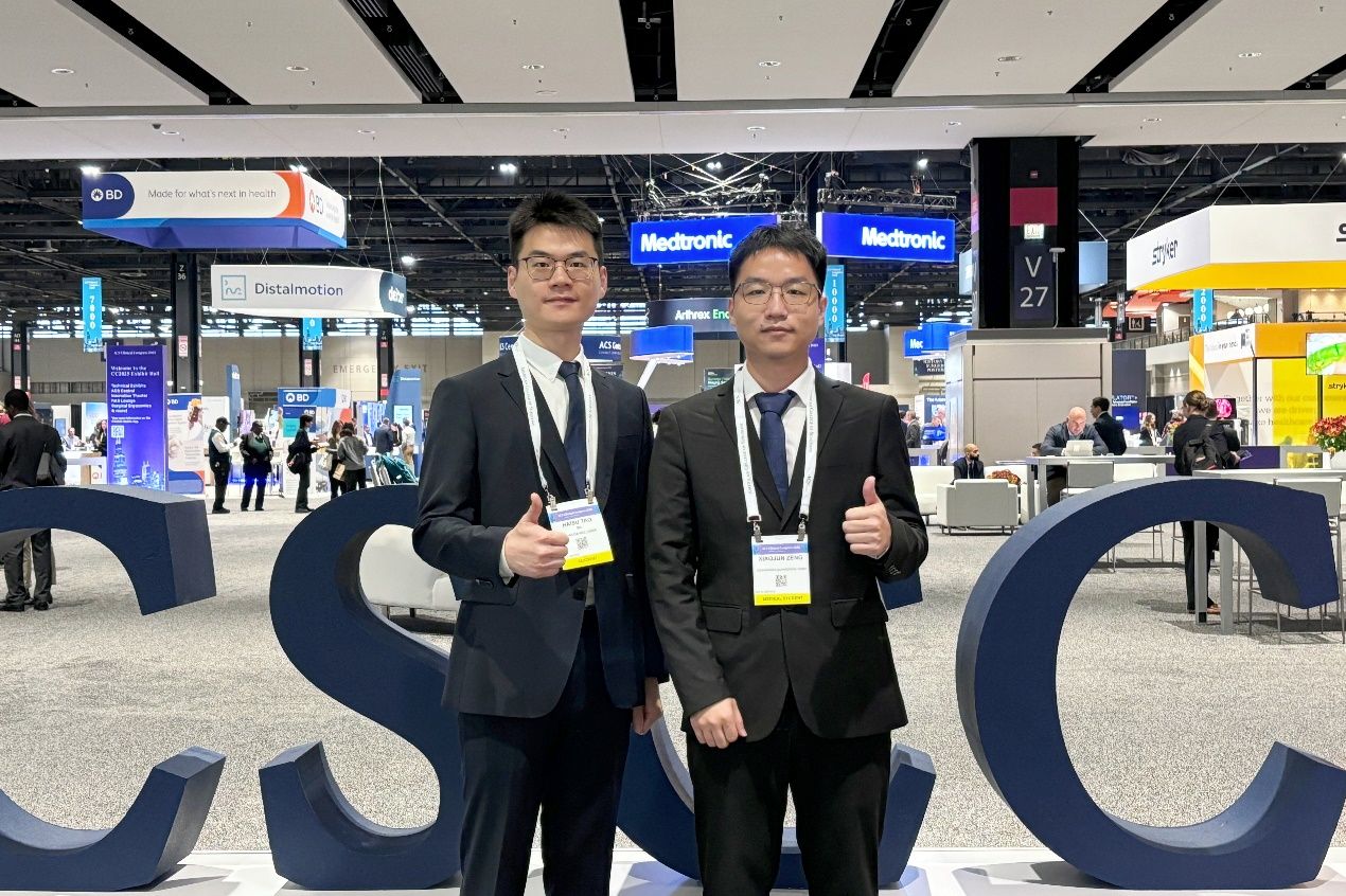 在方驰华和杨剑的指导下,博士后陶海粟与博士曾小军代表团队参会。6项入选成果涵盖1项大会报告、3项视频教育报告及2项电子壁报展示,集中呈现了数智化肝胆胰外科团队在计算机辅助外科、可视化技术导航与智能化微创手术等方面的长期积淀与创新突破。