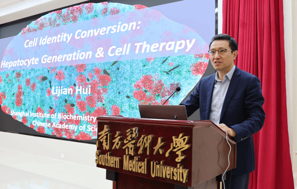 专题报告环节,中国科学院分子细胞科学卓越创新中心研究员惠利健阐述了肝细胞转分化与去分化机制与策略并应用于肝病治疗;北京大学基础医学院教授王韵介绍了CDYL基因在神经发育不同时期的生理作用机制以及在神经疾病中的病理作用机制;中国科学技术大学教授毕国强分享了利用超高速三维荧光显微技术对神经系统进行跨尺度精细解析的最新发现;中国医学科学院教授许琪介绍了新型小分子化合物靶向丝氨酸生成途径关键酶对谷氨酸受体激活的抑制作用以及对癫痫的治疗效果;北京大学基础医学院教授孙金鹏介绍了多个重大疾病中激素、感知平衡觉/听觉的GPCR受体,并探讨了开发潜在药物价值的活性物质;北京大学生物医学前沿创新中心教授白凡利用多组学就脑肿瘤转移特征解析进行了探讨;北京大学第六医院教授岳伟华就基于多组学数据探索常见精神障碍的机制和应用进行深入讲解;四川大学生命科学学院教授丁楅森介绍了靶向血管微环境的抗纤维化药物开发及其临床研究;中国医学科学院基础医学研究所教授王前奔介绍了前列腺癌冷肿瘤免疫逃逸的新机制和干预策略;广州国家实验室研究员胡苹阐述了肌肉干细胞在疾病和衰老中的新机制;南方科技大学医学院研究员贾宁揭示了细菌逆转录酶抗噬菌体的免疫调控机制;广东省农业科学院研究员张瑞芬介绍了其围绕广东特色农产品沙田柚展开的代谢相关研究和应用;中国医学科学院基础医学研究所副研究员浦洋阐述了染色质异常调控肿瘤免疫治疗的新靶点及机制;我校公共卫生学院教授彭飞揭示了熊蜂认知的积极情绪传染机制。