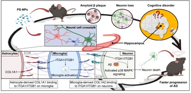 阿尔茨海默症作为全球神经退行性疾病的首要病因,此前,《Nature Medicine》曾报道在AD患者脑内发现更高浓度的微纳塑料,但其病理作用未明。黄振烈团队历时四年攻关,运用神经单细胞分选和多维细胞共培养等技术在分子机制上系统精准地刻画了纳米塑料在体内和体外如何通过胶质细胞-神经元的Collagen信号通路加剧了阿尔茨海默症的认知障碍。研究证实,长期纳米塑料暴露会特异性加剧AD模型小鼠海马区的异常细胞间通讯,而靶向抑制该通路可有效缓解疾病进程。