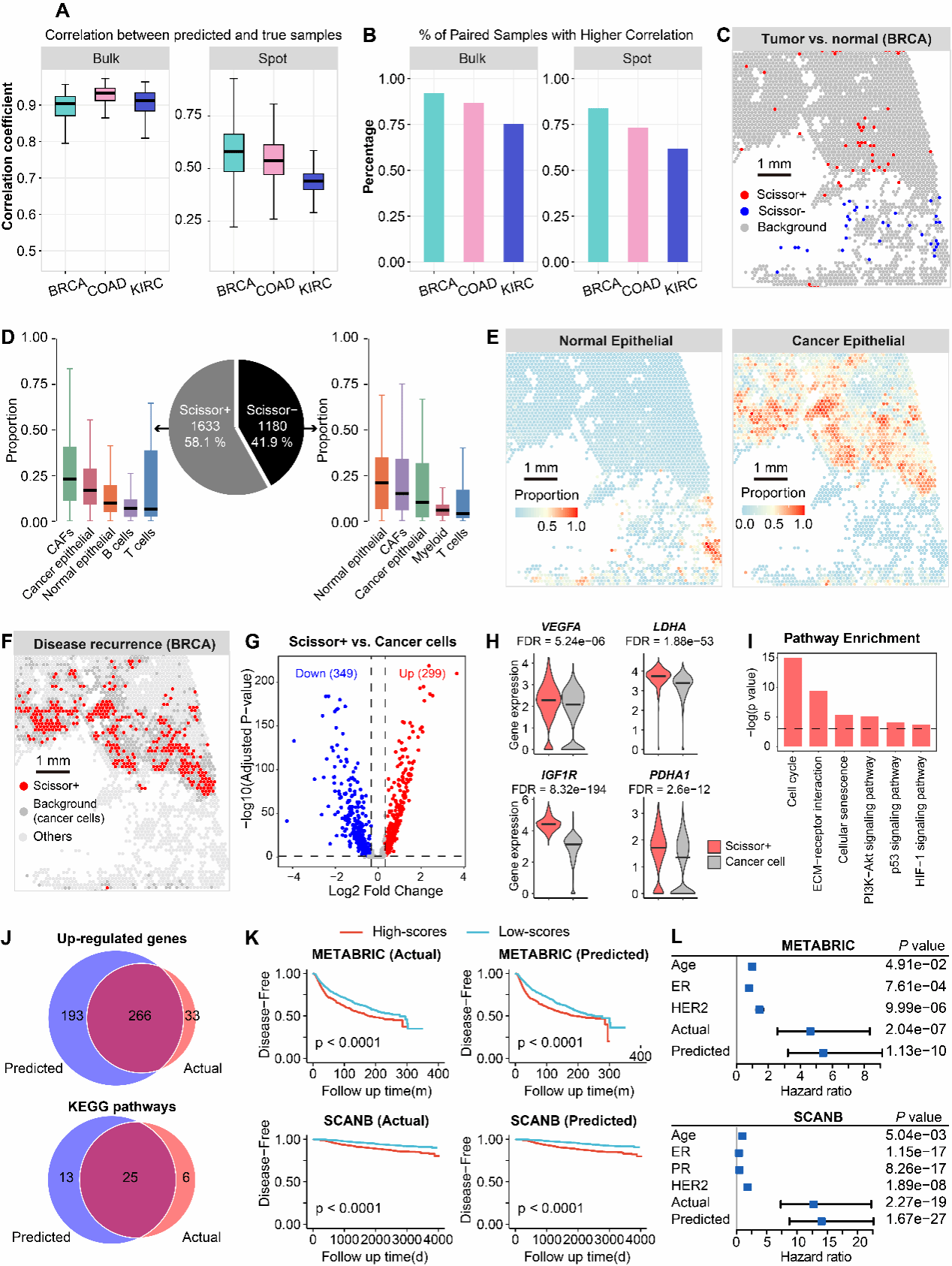 研究结果显示,BiSCALE在组织尺度和近细胞尺度的基因表达预测任务中均表现出良好性能。进一步分析表明,该方法预测得到的表达谱不仅在基因层面与真实测量结果具有较好一致性,在通路活性层面也能够恢复具有生物学意义的关键信号。这提示,常规病理图像除了承载组织形态信息外,还具有反映分子特征的潜力。