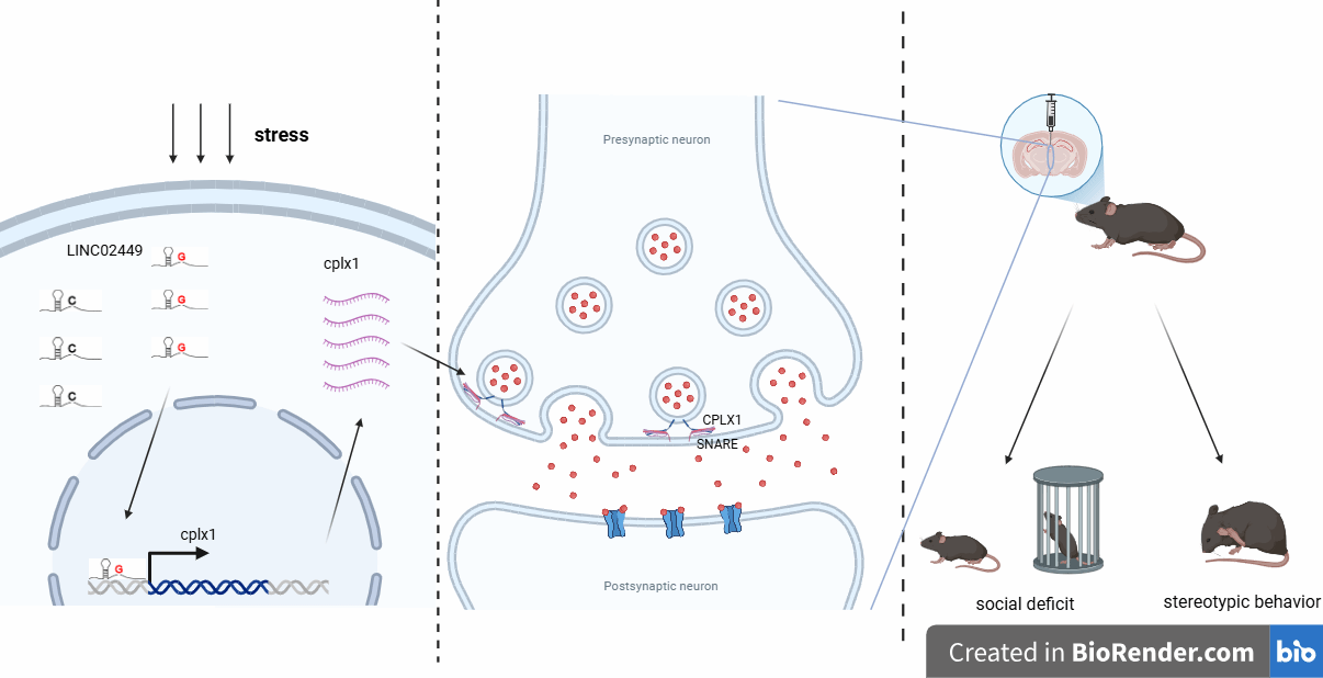 图1 LINC02449介导CPLX1介导小鼠行为异常的作用机制示意图