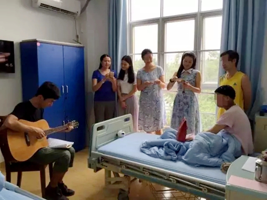石卫民请来志愿者陪伴这些癌症患者,弹琴唱歌,病房不再冷清