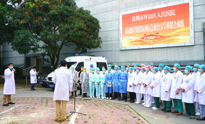 “是120吗?有一名2天前从湖北来深的发热患者,半小时前左下肢受伤疼痛出血,需要紧急救治……“3月6日,坪山区人民医院举行一场新冠肺炎疑似病例应急救治多学科联合演练,进一步增强医院风险防范意识,提高应急处理能力。
