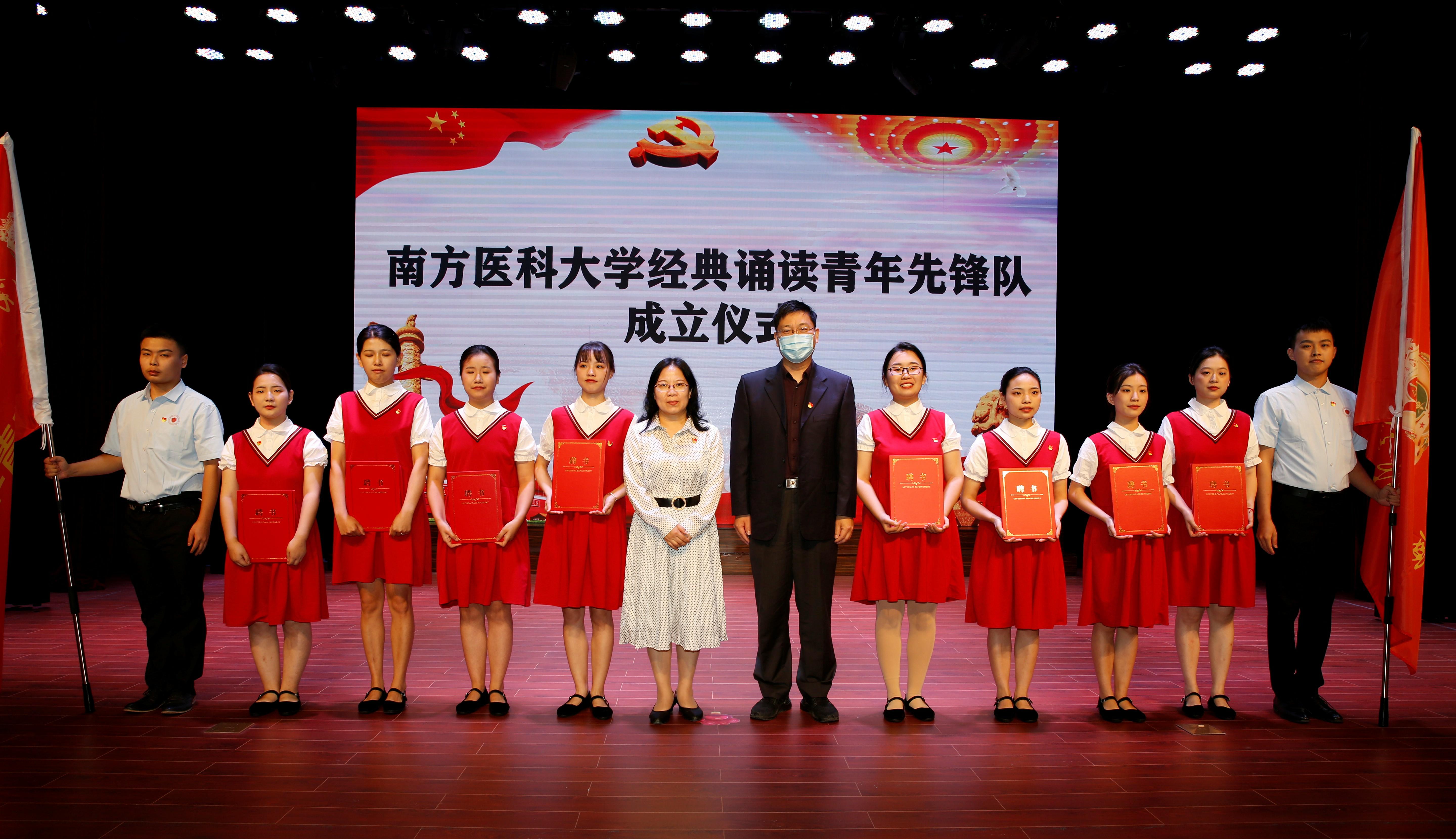 活动当天还举行了南医大经典诵读青年先锋队(以下简称先锋队)成立仪式。南医大党委副书记蒋鸿、广州市社科联副主席谭晓红为先锋队颁发证书并授旗。