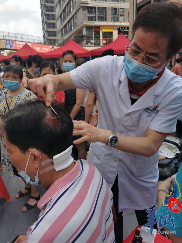 就在医生们义诊过程中,一名六十多岁的老人突然晕倒,咚地一声头脑勺着地,顿时鲜血直流。谢华主任急忙上前查看情况,并且喊来急诊科医护进行处理。两分钟后,老人苏醒,他说自己连着几天腹痛,刚才就一阵眩晕后就失去了意识。