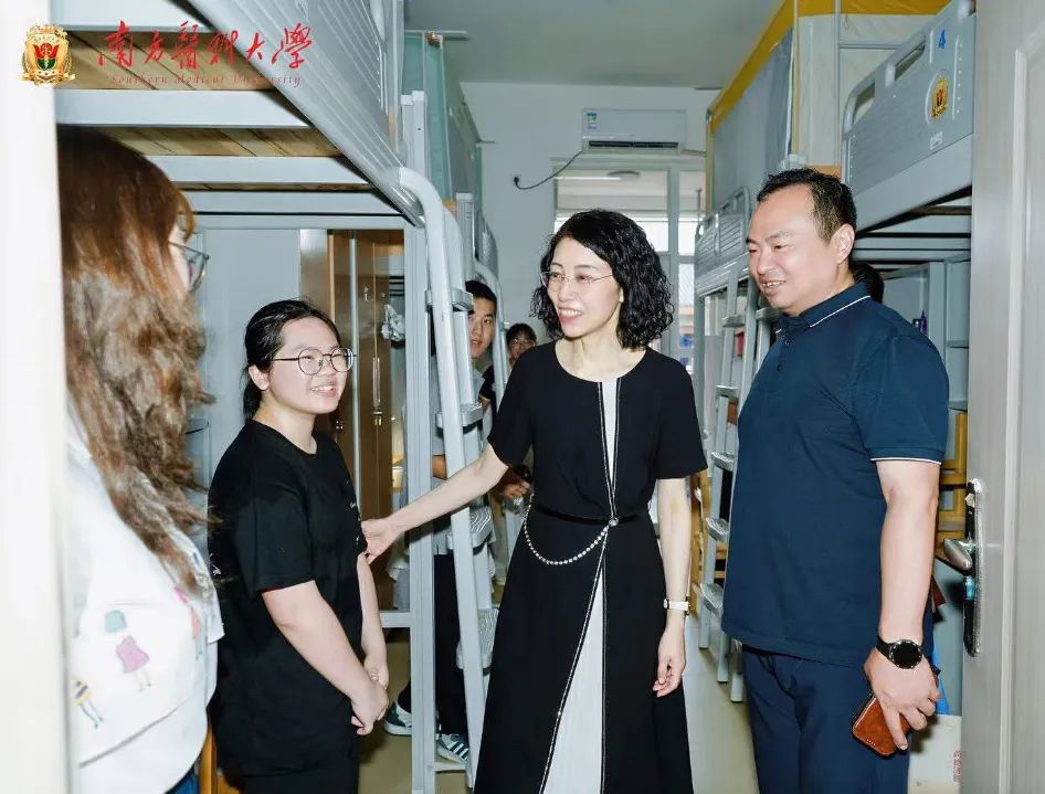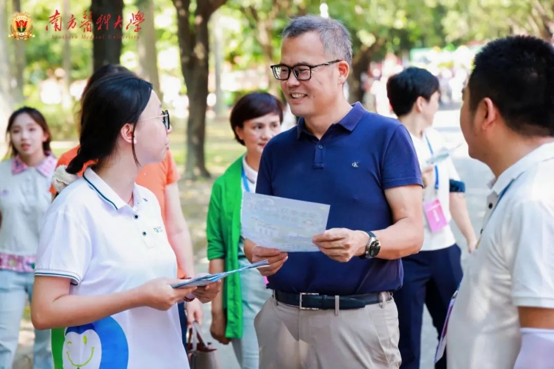 “欢迎同学们来到南方医科大学!”张玉润与新生及家长们亲切交流,详细了解大家对学习环境、住宿条件、公共空间的情况。他表示,学校从教育教学、科学研究、生活保障等多维度支撑学生的全方面发展,为广大学子打造一个学习高效、生活舒适、充满活力的学习成长空间。他勉励同学们不负青春韶华,勇担时代使命,尽快适应崭新的大学生活,在这片孕育了无数卓越医学人才的沃土上,谱写新时代南医青年的逐梦华章。