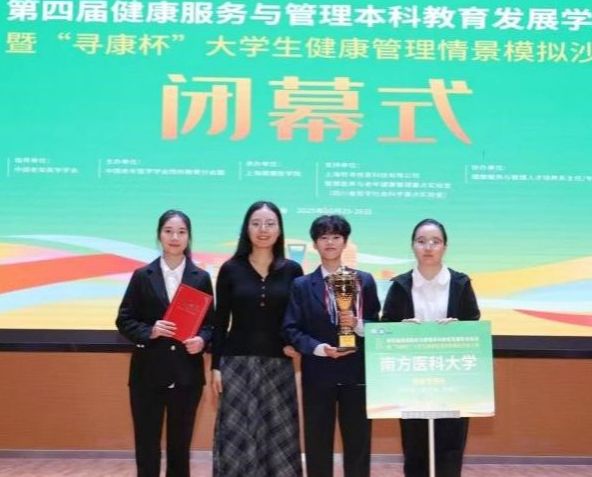 南医讯 (文/图 卫生管理学院 郭萍萍) 在近期举行的第四届全国健康服务与管理教育高峰论坛暨第四届“寻康杯”健康服务与管理情景模拟沙盘竞赛上,由卫生管理学院教授张持晨带队、郭萍萍等为指导教师、2023级健康服务与管理专业廖思雅、胡锦欣、林子涵3名同学组成的“寻康觅健”代表队以总排名第三的优异成绩荣获本次大赛特等奖,实现了我校在该赛事上的最好成绩。
