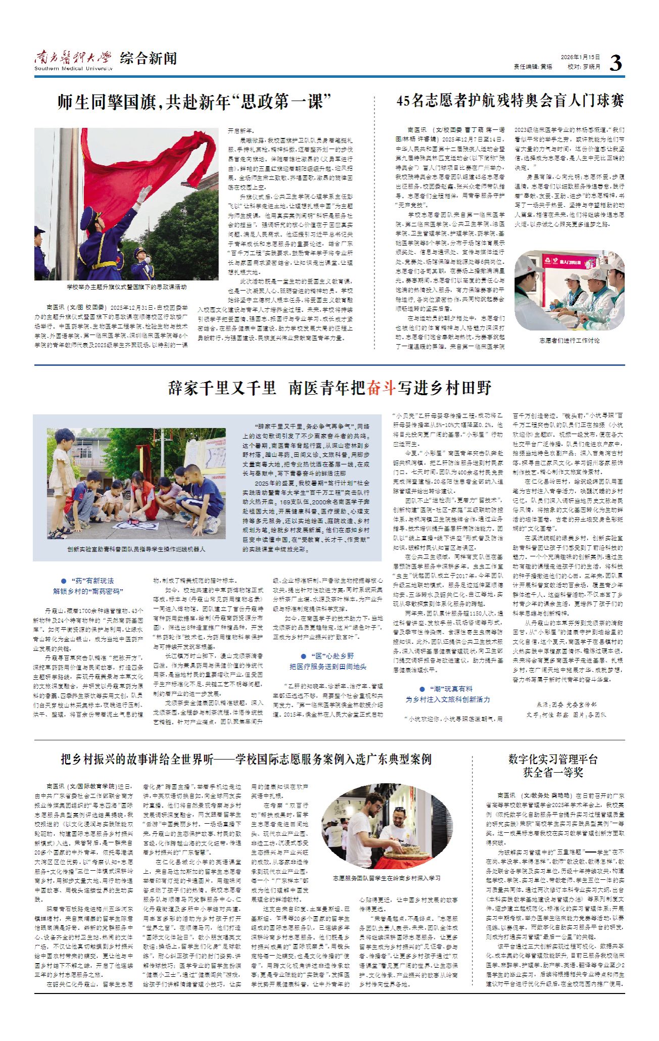 南医讯 (文/国际教育学院)近日,由中共广东省委社会工作部联合南方报业传媒集团组织的“粤志四海”国际志愿服务典型案例评选结果揭晓,我校报送的《以文化浸润与实践赋能双轮驱动,构建国际志愿服务乡村振兴新模式》入选。荣誉背后,是一群来自20多个国家的中外青年,依托粤港澳大湾区区位优势,以“考察认知+志愿服务+文化传播”三位一体模式深耕岭南乡村,用脚步丈量大地、用行动传递中国故事、用镜头连接世界的生动实践。