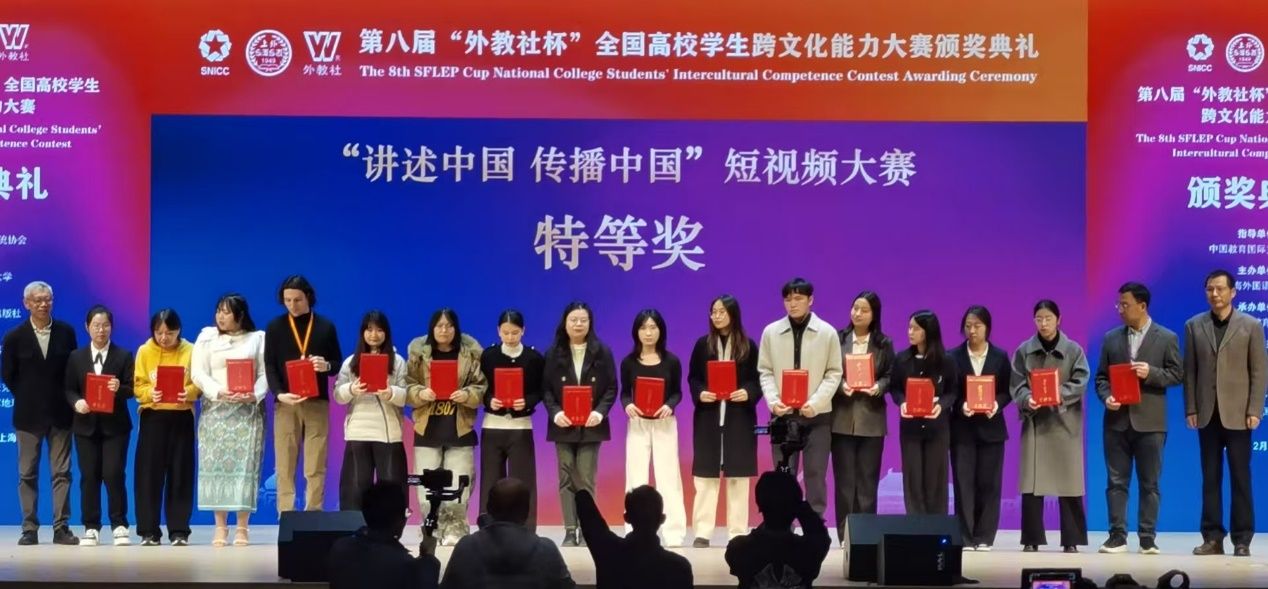 由外国语学院教师王恬指导的本科生团队(温佳璐、黎献远、熊芮语)荣获“讲述中国·传播中国”短视频大赛特等奖;由外国语学院教师蔡思颖、宾科与国际教育学院教师王瑞联合指导的留学生团队(SAY RACHANA、DAHAL PABITRA、SAY NISA)荣获国际学生组二等奖。