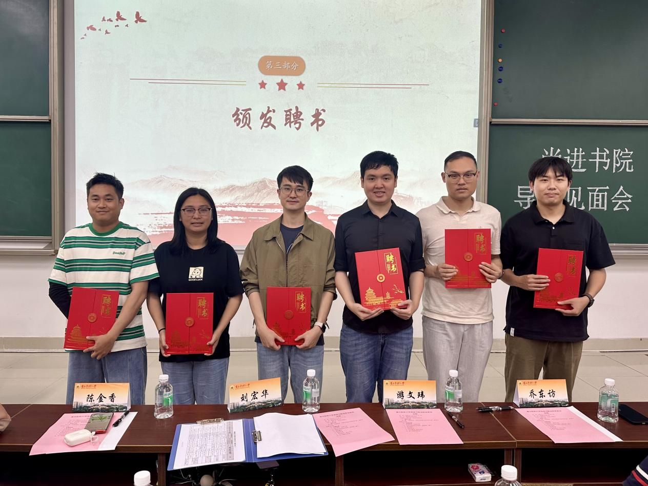 游文玮简要介绍了本次导师见面会的目的与意义,强调导师在学术研究与学生成长过程中发挥着重要作用。丁津就尚进书院团学联的基本情况进行了介绍。刘宏华、游文玮共同为学业导师和专职导师颁发聘书。